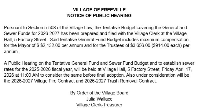 Notice: Budget Hearing 04 17 2026